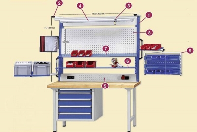 >8< Systemlochwand 550 mm hoch mit Quadratlochung. Länge passend für Aufbauten an 1500 mm Werkbänken.