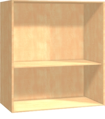 aus Dreischicht - Feinspanplatte E 1. Seiten- Mittel- und Rückwände fest verdübelt und verleimt. Einlegeböden mit Sicherheitsbodenträgern, über Reihenlochbohrungen im Raster von 32 mm verstellbar.