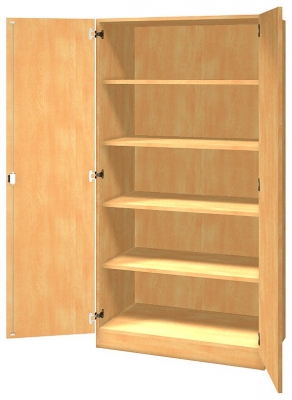 aus Dreischicht - Feinspanplatte E 1. Seiten- Mittel- und Rückwände fest verdübelt und verleimt. Türen mit umlaufender 2 mm ABS-Sicherheitskante, 270° öffnend, mit Drehstagen - Zylinderschloss und 3-fach Verriegelung. Einlegeböden mit Sicherheitsbodenträgern, über Reihenlochbohrungen im Raster von 32 mm verstellbar. Schrankhöhenverstellung über Sockelverstellfüße zum Ausgleich von Bodenunebenheiten.
