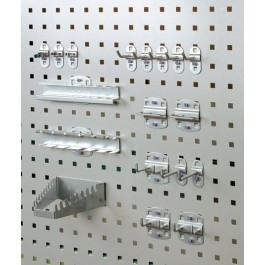 Verzinkter Stahl, mit Kunststoffschraube zur Sicherung gegen herausfallen.