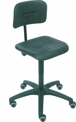 und verdeckter Sicherheitsgasfeder, Standsäule mit Fünffußgestell aus Kunststoff, stufenlose Verstellbarkeit der Sitzhöhe von 420-620mm mittels Gaslift. Lehnenhöhe- und Lehnenneigung einstellbar, Permanentkontakt wahlweise. Sitz und Lehne körpergerecht geformt.