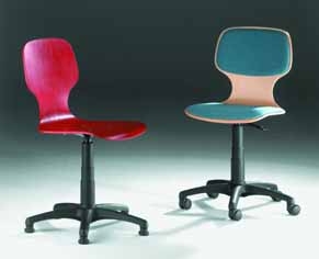 und verdeckter Gewindespindel, ausdrehgesichert. Sitzhöhe 460 - 660 mm. Sitzschale in Buche natur in Höhe stufenlos verstellbar, stabiles Kunststofffußkreutz, 5 - strahlig, mit Bodengleitern.