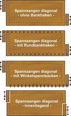 für den Einsatz von Rundbankhaken oder Exzenterbankhaken an 2-er Arbeitsplatz. |