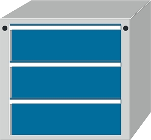 mit drei Schubladen, 180/180/180mm. B/T/H 630x615x600mm.