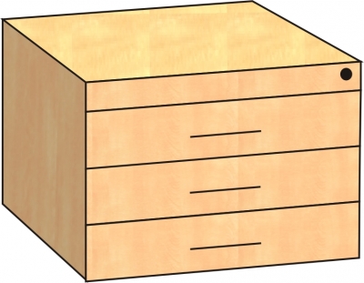 B/T/H 600 x 600 x 403 mm, mit drei Schubladen.