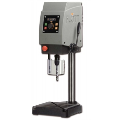 Wechselstrom-Tischbohrmaschine mit höhenverstellbarem Bohrkopf, stufenloser Drehzahlregelung, Gewindeschneideinrichtung, digitaler Drehzahl- und Bohrtiefenanzeige.