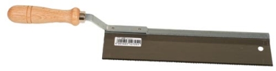 stabiler, schwarz lackierter Rücken, helles gewachstes Hartholzheft, Zähne geschränkt und geschärft, Patent-Hohlschliff.