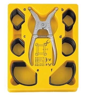 kompl. Satz Spannklammern in 5 Größen, mit je 8 Spannklammern einer Größe und Spreizzange.