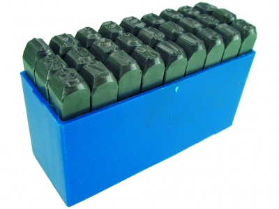 zum Einschlagen in Werkstücke mit einer Festigkeit bis zu 120 kp/mm² . Härte an der Gravur: 58 - 60 HRc, jeder Stempel schlagkopfvergütet, mit Sichtgravur auf jedem Stempel, Schriftbild nach DIN 1451. In unzerbrechlichen, blauen Plastikkästchen.