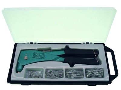 Handnietzange mit Mundstück 2-5 mm, inkl. 100 Alu- Blindnieten 3 u. 4mm.