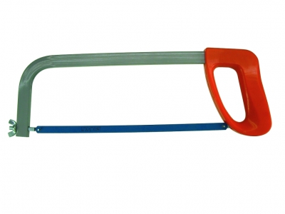 für Handsägeblätter 300 mm, Vierkantrohr 20 x 10 mm, mit schlagfestem Kunststoffgriff und Handschutz, Blattspannung durch nachstellbare Schraube.