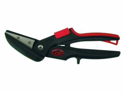 für lange und gerade durchlaufende Schnitte (große Radien). Alle Metallteile aus rostfreiem Edelstahl, Griffe aus robustem glasfaserverstärktem Kunststoff mit Weichstoffeinlage. Abgewinkelter Scherenkopf für hohe Sicherheit, bringt das Material auf Abstand und die Hand aus der Gefahrenzone.