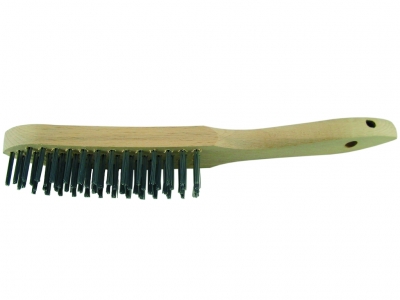rostfreier Stahldraht, glatt Ausführung, aus Buchenholz mit abgerundeten Kanten, mit Aufhängeloch, Länge 295 mm. Drahtstärke 0,3mm, Besatzhöhe 25 mm, 4 Drahtreihen.